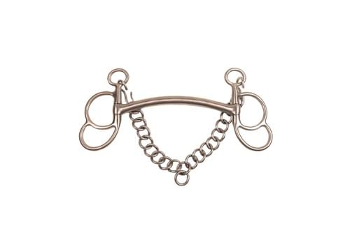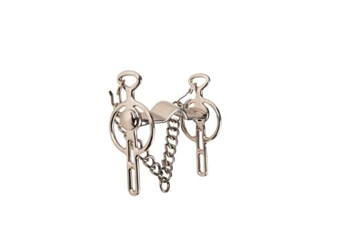 Stainless steel two slot cheek Liverpool bit, with flat plate port mouth.